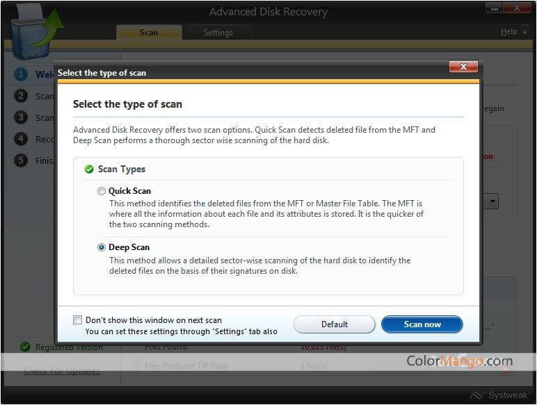 A data recovery tool that scans files and folders that you have deleted, it can recover data files from hard drives, partitions, external devices, and even CD and DVD.