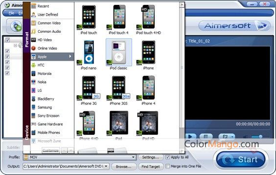 Aimersoft DVD Ripper is a powerful DVD video conversion tool that integrates DVD copy, DVD video cutting, DVD video merging, DVD video format conversion, and adding watermark to video and other functions. It supports all commonly used video and audio formats, including MP4, AVI, WMV, MOV, RM, RMVB, MPG, MPEG. Aimersoft DVD Ripper is easy to use and can convert video and audio to the formats supported by iPhone and Apple TV.