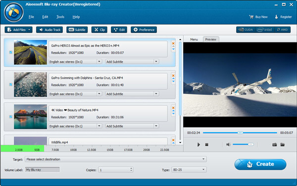 Aiseesoft Blu-ray Creator Features 1. Support to create Blu-ray disc 2. Support to burn any video to Blu-ray folder/ISO file 3. Support to convert/create videos in a batch process 4. Support to add subtitles and audio tracks to the video 5. Built-in video editor: basic video editing functions 6. Allows customizing video profile settings (video encoder, frame rate, bitrate, etc.)
