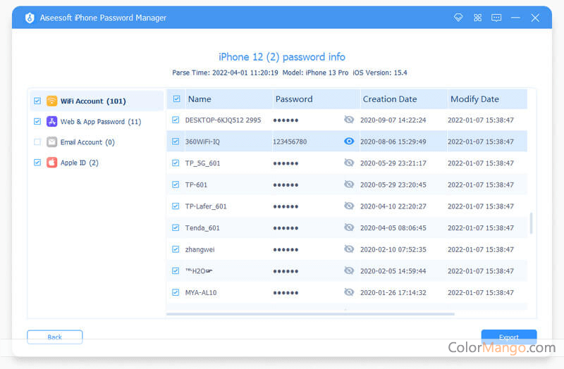 With Aiseesoft iPhone Password Manager, you can easily manage your passwords and other information on your iPhone, without having to memorize multiple passwords or write them down on a piece of paper. Additionally, the software is compatible with various versions of the iPhone and can be easily installed and used on your device.