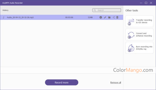 AnyMP4 Audio Recorder is a practical audio recording tool. This software can help you record lossless audio from a computer sound card and microphone and directly export MP3, M4A, WAV, AAC, and other formats.
