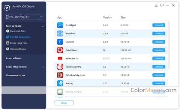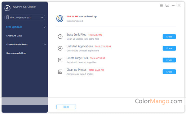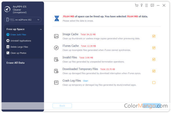 With AnyMP4 iOS Cleaner, you can easily and quickly delete or clean up any unnecessary data from the iPhone/iPad/iPod Touch, including temporary files, application cache files, cookies, unused applications, etc.