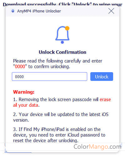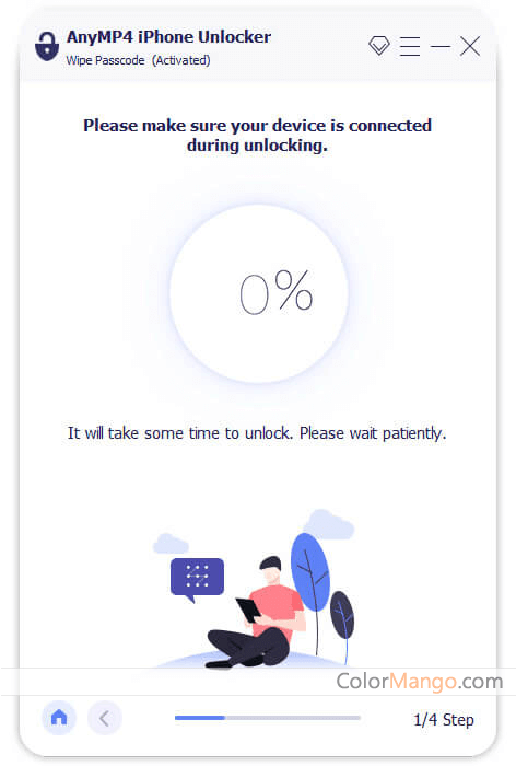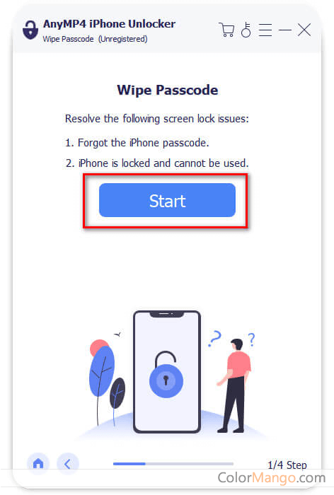 Take a Closer Look at AnyMP4 iPhone Unlocker 1. Supports unlocking all types of iOS devices. 2. Disables all types of passcode. 3. Removes Screen Time Passcode or Restrictions Passcode. 4. Ability to remove Apple ID. Attention: All data and settings will be deleted if you remove your Apple ID. 5. Easy-to-use operating system: Step1 - Install AnyMP4 iPhone Unlocker on your computer. Step2 - Connect your devices to your computer. Step3 - Press one single button: "start" to unlock!