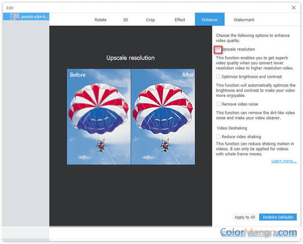 A video effect enhancement software can improve the quality and resolution of the ordinary video, optimize brightness and contrast, eliminate video noise, and reduce video jitter. With the built-in video editor, you can customize the video effect, clip the video length, crop the video, and so on.