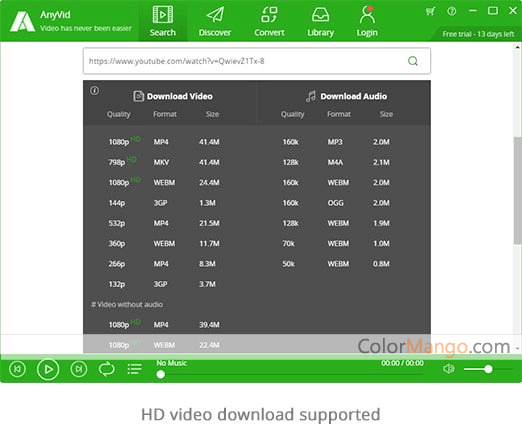 AnyVid is a very easy-to-use video download tool, which is compatible with most video formats, including MP4, 3GP, M4A, WebM, etc.