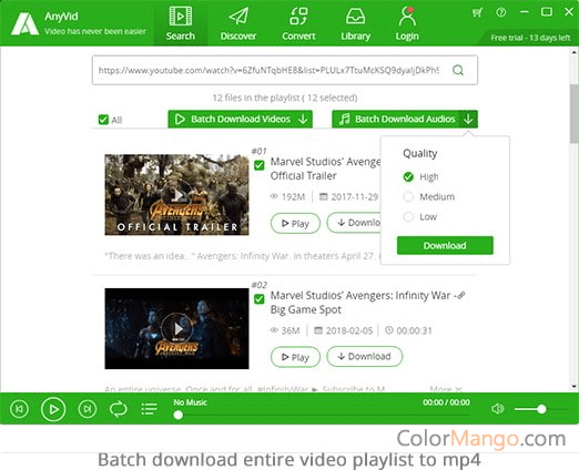 AnyVid Features: 1. Search and download any video you want: With a powerful search engine, you can search for HD videos on AnyVid on YouTube, Facebook, or other video websites.