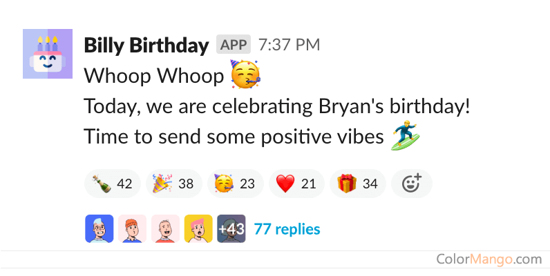 Billy Birthday bot can not only bring some fun to daily life, but also improve employee participation and team cohesion.