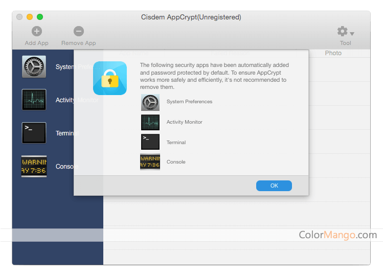 Cisdem AppCrypt Mac is an application encryption software. You can set a security password for your application, protect your iPhoto, iTunes, Contacts, Facebook, and other applications you don't want to be opened by others. It is very convenient to use and easy to protect Your app privacy.
