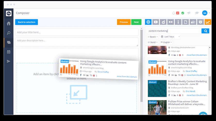 ContentStudio is a versatile and robust social media manager, which can help you to discover, write, and share the best content to your social media platform. It simplifies your content marketing workflow and saves your precious time for greater things. As far as I know, using ContentStudio is the easiest way to produce new content and schedule posts on Facebook, Twitter, Pinterest, Tumblr, WordPress, Instagram, Linkedin, Medium, etc. Anyway, It contains a complete solution of discovering, publishing, scheduling, analyzing, and automation. Therefore, entrepreneurs and businesses can manage multiple social media platforms, analyze marketing, and collaborate with team members more easily.
