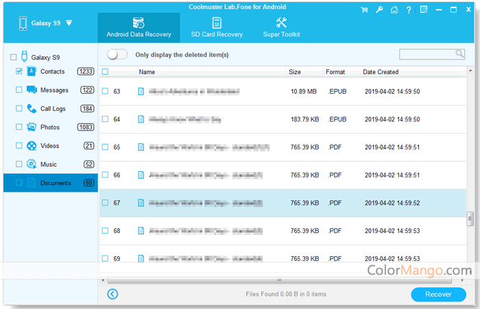 * Two recovery modes to recover deleted files from Android devices