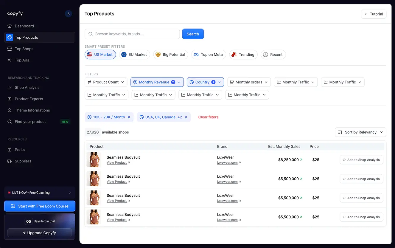 Perfect for beginners and pros, Copyfy simplifies the entire process of launching and scaling a dropshipping business.