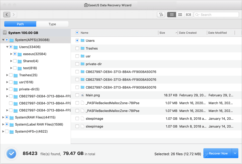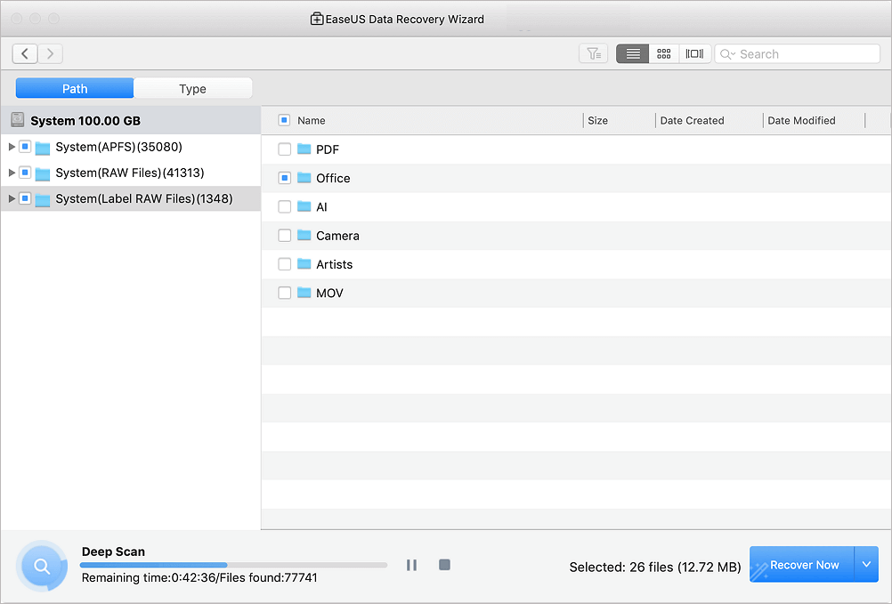 EASEUS Data Recovery Wizard for Mac can scan files in many formats, such as pictures, audio, and video. There is no limit on the size of the files. It can preview the contents of files in the software before recovery.