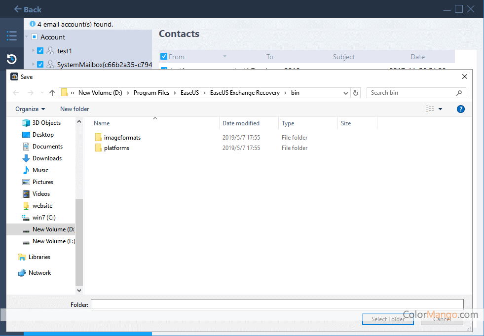 EaseUS Exchange Recovery restores the recovered EDB files to the current Exchange mail server.