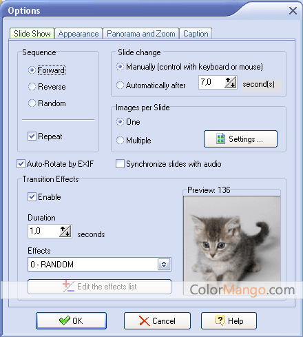 You just need to specify the folder where pictures are located, set the time for each picture to be displayed, select the gradient effect and then sit down and enjoy it. If the image is too big or too small for your display, the software will resize the picture to be suitable for viewing.