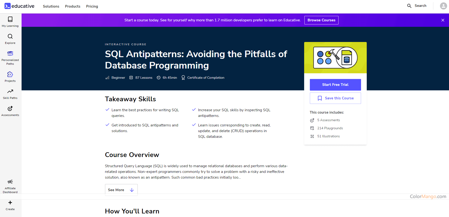 Rich Exercises and Projects: Educative's courses offer varous exercises and projects, helping learners consolidate their knowledge and apply it to real projects.