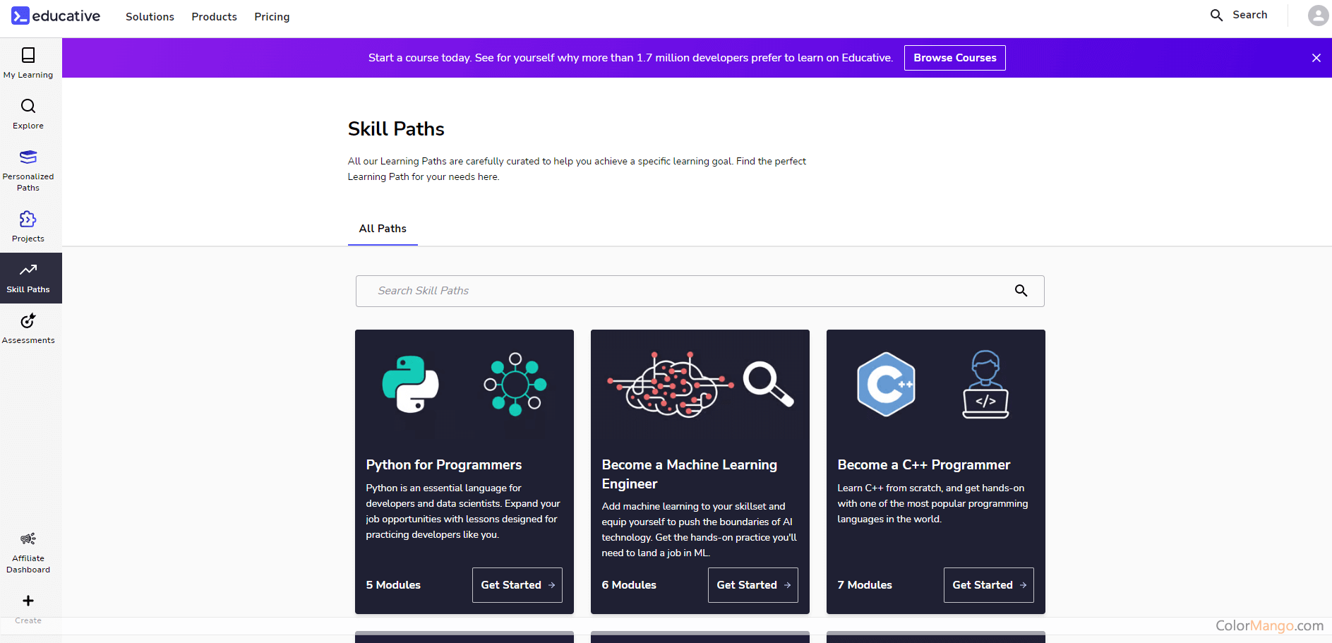 Cover Multiple Programming Languages and Technology Fields: Educative's courses cover multiple programming languages and technology fields, including Python, Java, React, Node.js, and more. Learners can choose courses that suit their needs and interests.