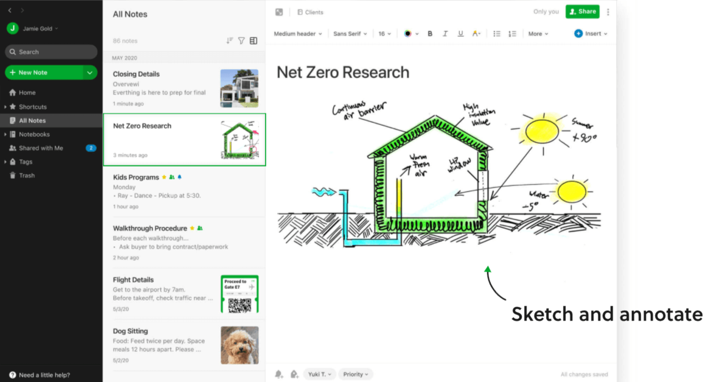 One of the best note-taking software can manage all your essential documents, photos, recording, PDF, web pages, etc. And data can be synchronized and shared between all platforms.
