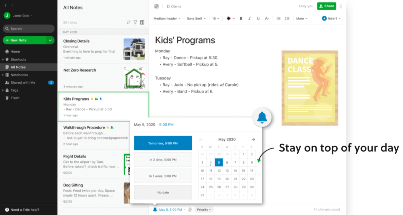 Evernote assists you to capture and manage everything that matters to you. Any ideas, to-do lists, photos, recording, web pages, documents can be synchronized with Evernote. Additionally, it supports collaborating with your team and editing together in real-time. It’s an excellent tool to store everything from school, work, life in a single place. You can use it at any time even when you are on the go and offline as it adapts to multiple devices. It works on Windows, MacOS, Android and iOS.