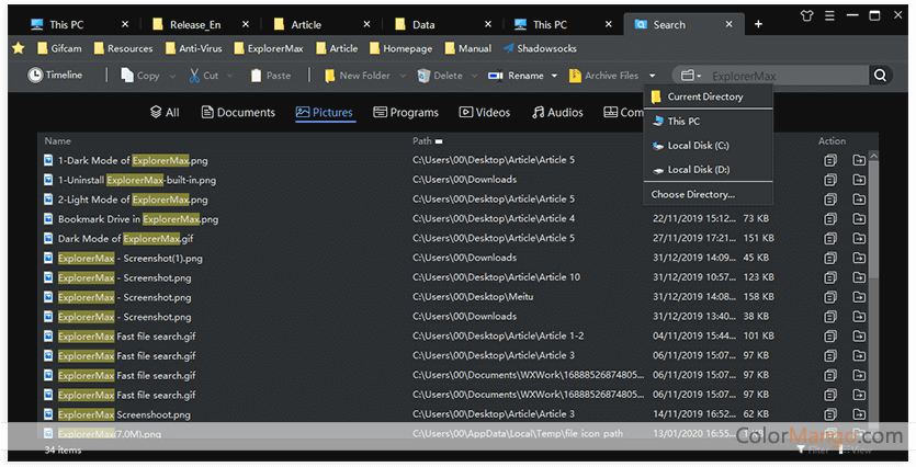 Explorermax is a more intelligent and better alternative software for Windows's file explorer, which provides functions such as tabs, folder favorites, batch rename, etc.