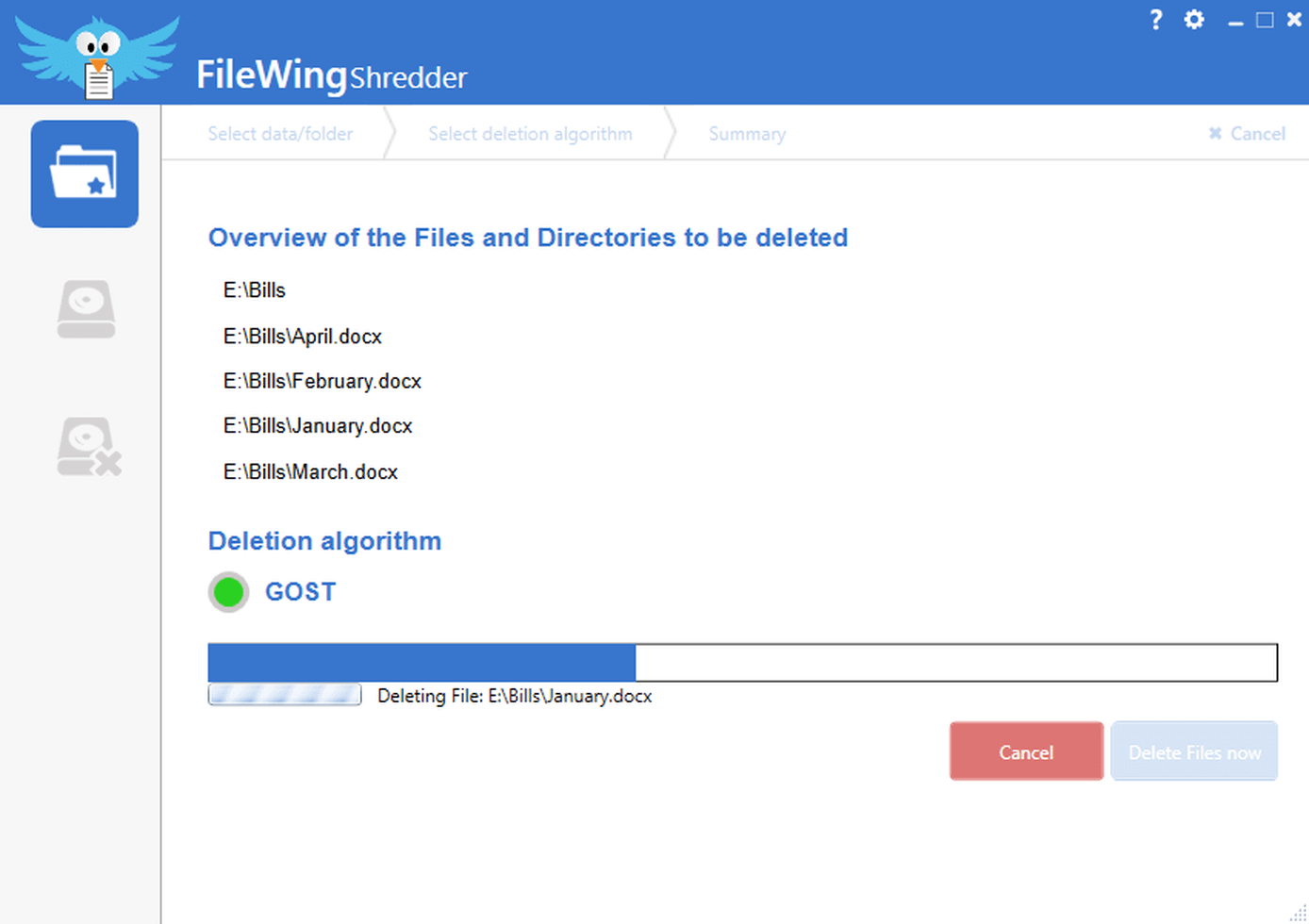 FileWing Shredder is a secure and reliable file shredder that uses multiple algorithms to permanently delete files, preventing data recovery.