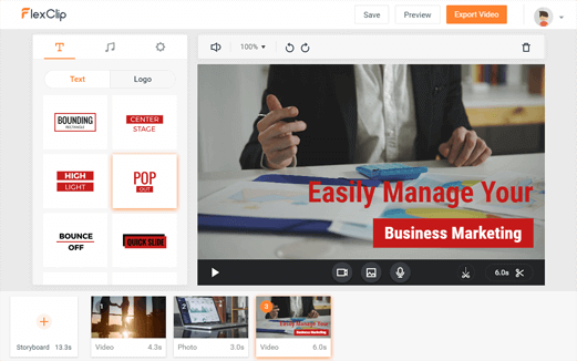 FlexClip is a simple yet powerful online video editing tool that provides a one-stop video service. It allows you to create outstanding video works in just a few minutes, helping businesses and individuals easily produce professional marketing videos and TikTok videos. It has gained popularity and millions of users worldwide. FlexClip offers hundreds of video templates, rich animated elements, and millions of free commercially-usable videos, images, and music.