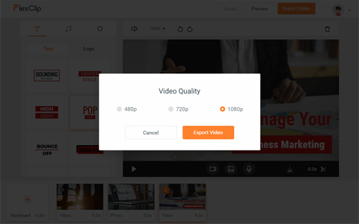 4 million royalty-free template resources Through collaboration with content-rich resource platforms, FlexClip provides a massive collection of royalty-free audio, HD videos, and image assets for you to use freely.