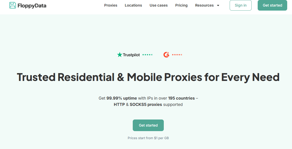 FloppyData offers: ✅ Residential proxies ✅ Mobile proxies (4G/5G) ✅ Datacenter proxies ✅ ISP proxies (static residential IPs from ISPs)