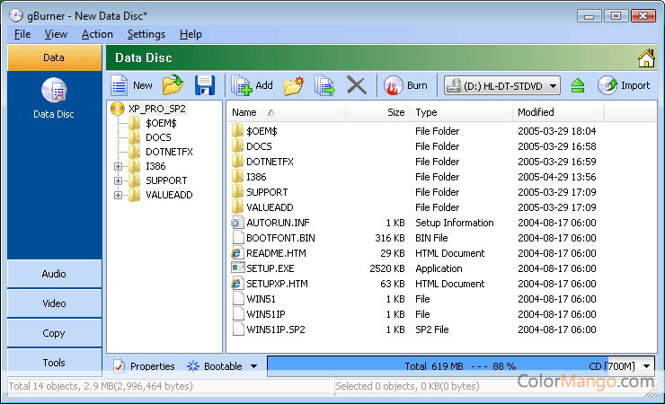 gBurner is a powerful and easy-to-use CD / DVD / BD recording software. gBurner can create data, audio, and video CD / DVD / BD, create startup discs to guide the discs to run automatically, etc.