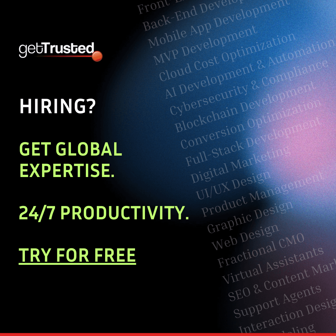 GetTrusted is an on-demand managed services platform that connects businesses with a global network of over 6,000 vetted professionals across 100+ skill categories, including software development, design, marketing, DevOps, and cybersecurity.