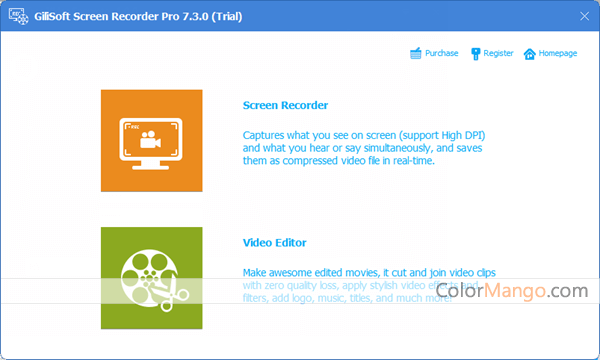 GiliSoft Screen Recorder Pro enables you to record videos of the entire screen or custom regions, and it also comes with useful editing features, such as merge/trim video files, adjust speed, brightness, saturation, and contrast, crop video, rotate video, add watermark and more.