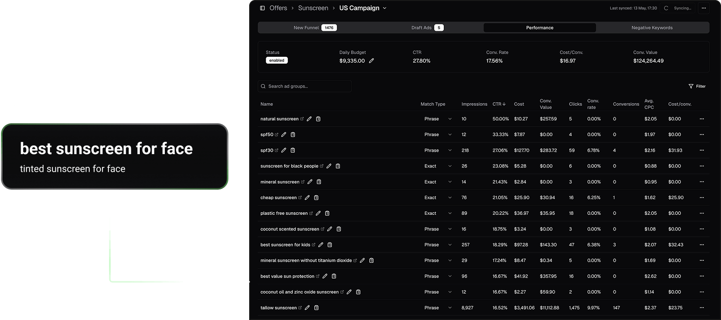AI agents generate unique ad copy & landing pages for every search term, boosting relevance.