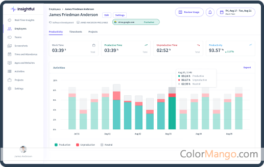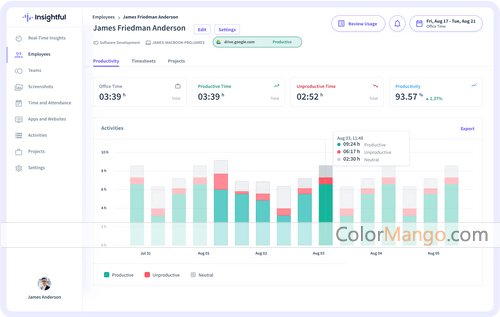 Insightful Features: Employee Monitoring Time Tracking Automatic Time Mapping