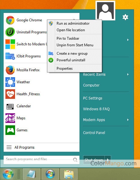 IObit Start Menu is a convenient start menu software for Windows 8 produced by IObit company. Most friends who have used Windows 8 can't adapt to the lack of a start menu function. After all, the start menu has been silently serving us in the lower-left corner of the screen for more than ten years. When you open an application in Windows 8, you will unconsciously and habitually move the mouse to the start menu position. Now the IObit Start Menu program becomes your better solution for Windows 8 and Windows 10 Start Menu! IObit Start Menu can make the start menu of Windows 10 return to the familiar style of Windows 7 and allow more customization options with only a few mouse clicks. With the IObit Start Menu, you can easily change the taskbar, including color and system time display. In addition, you can also merge taskbar buttons with one click and hide Cortana/search box and virtual desktop buttons from occupying a large amount of taskbar space.