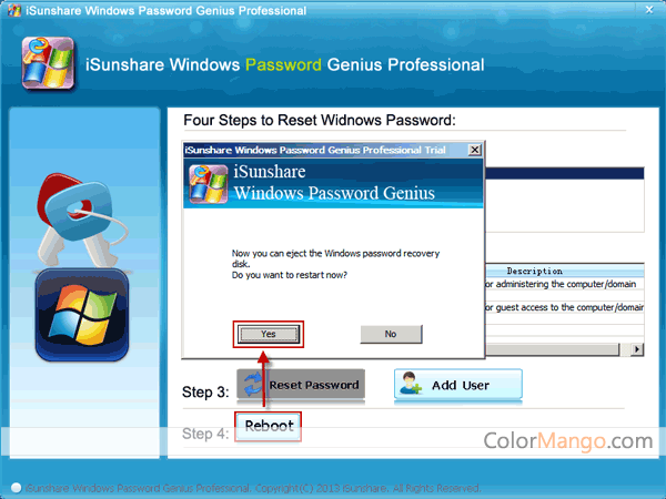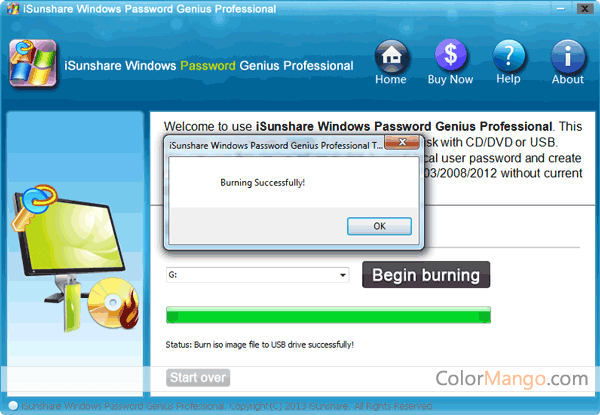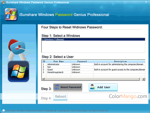 First, install iSunshare Windows Password Genius on a healthy computer. Then connect your USB/CD/DVD or other storage hard disks to the computer. Next, create a password reset mode on your hard drive. After that, put through your disk and your locked computer together, and boot your computer from the reset disk. Your computer will then unlock within seconds! If you still have confusion, iSunshare Windows Password Genius provides tutorials to help you step by step.