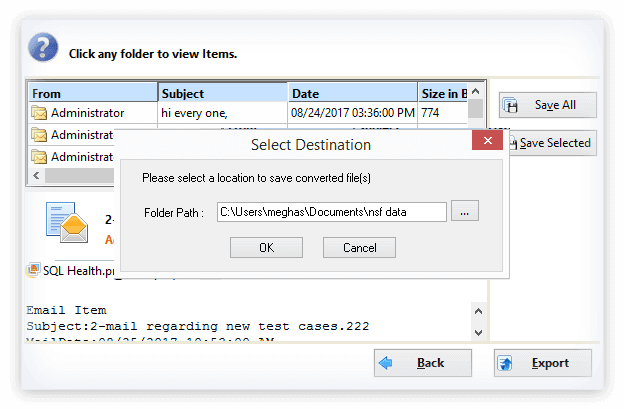 To convert NSF files into Word with Kernel, you just need to follow three simple steps: select the NSF files, then preview the displayed NSF files, and save the final DOC files to the preferred destination folder. Done. Let the program do the conversion procedure.