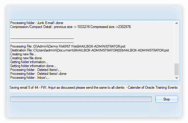 Kernel for PST Compress & Compact allows compressing PST files in just four simple steps without harming data integrity.