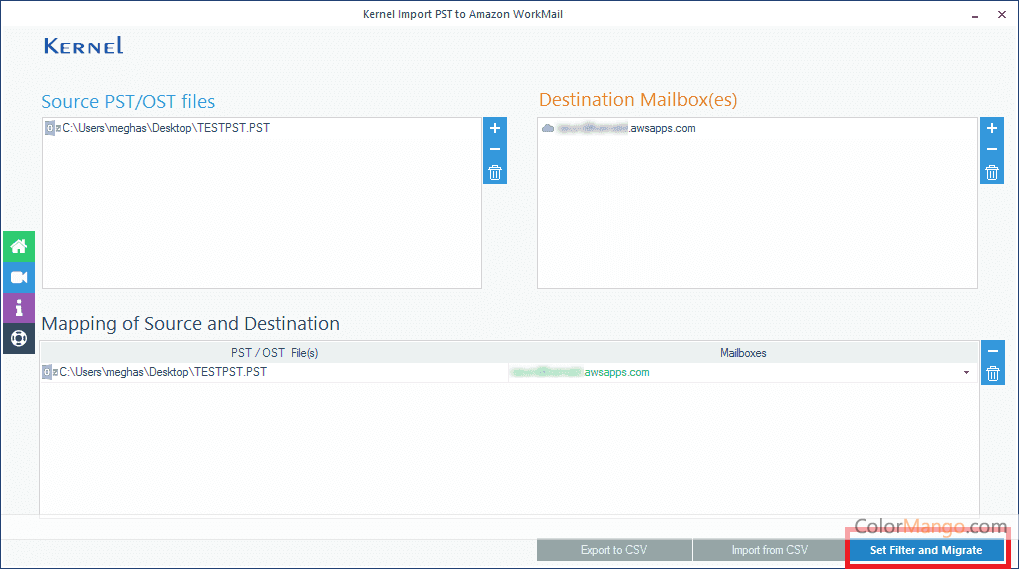 Kernel Import PST to Amazon WorkMail Features: Import PST files into Amazon WorkMail, preserving the folder structure, email properties, and attachments. Select specific PST files or folders to import into Amazon WorkMail, giving you the flexibility to choose what data to migrate. Apply various filters to the PST files, such as date-range, subject, sender, and recipient, to import only the relevant data. Supports different file formats such as ANSI and Unicode PST files, and it can import data from both compressed and uncompressed PST files. Supports incremental migration, allowing you to import new or updated PST data without importing duplicates. Uses secure protocols and encryption to ensure that your data is protected during the migration process. Generates detailed reports of the migration process, including information about the number of items migrated, migration status, and any errors encountered.
