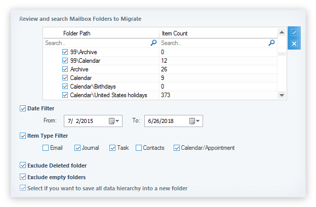 Secure your vital data by backing up Office 365/Exchange to PST. This utility backs up and restores mailboxes in bulk, which is ideal for large companies. All Exchange versions, Outlook PST files, and Office 365 plans are supported.