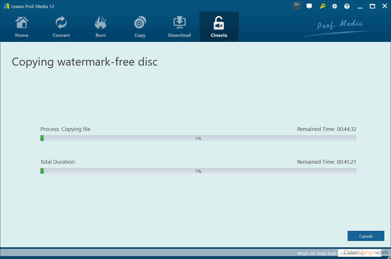 *High Speed: The software uses advanced processing algorithms to ensure that the Cinavia removal process is fast and efficient, so users don't have to wait for a long time to watch their movies.