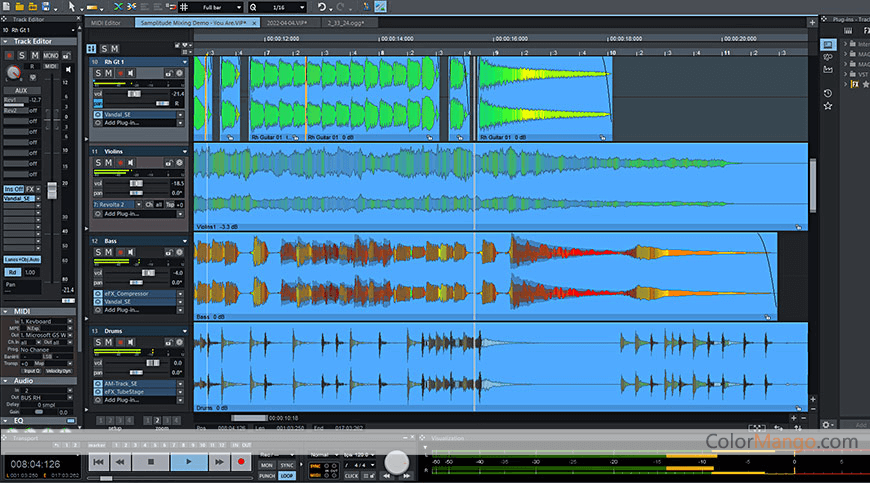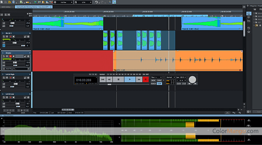 Magix Samplitude Pro X6 brings new functions to optimize and personalize workflow. Includes a plug-in browser with the search function, advanced automation, and tools like dynamic EQ.