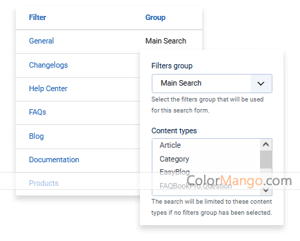 Assemble filters into groups to allow the creation of multiple search instances that search in different content.