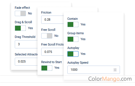 Configure the drag and scroll effects parameters for a unique slide animation style.