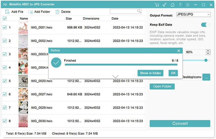 MobiKin HEIC to JPG Converter allows Windows users to convert HEIC files from iOS devices into JPG, JPEG, or PNG formats. This tool supports both single and batch conversions, maintains image quality, and preserves EXIF data, making HEIC images compatible with more platforms.