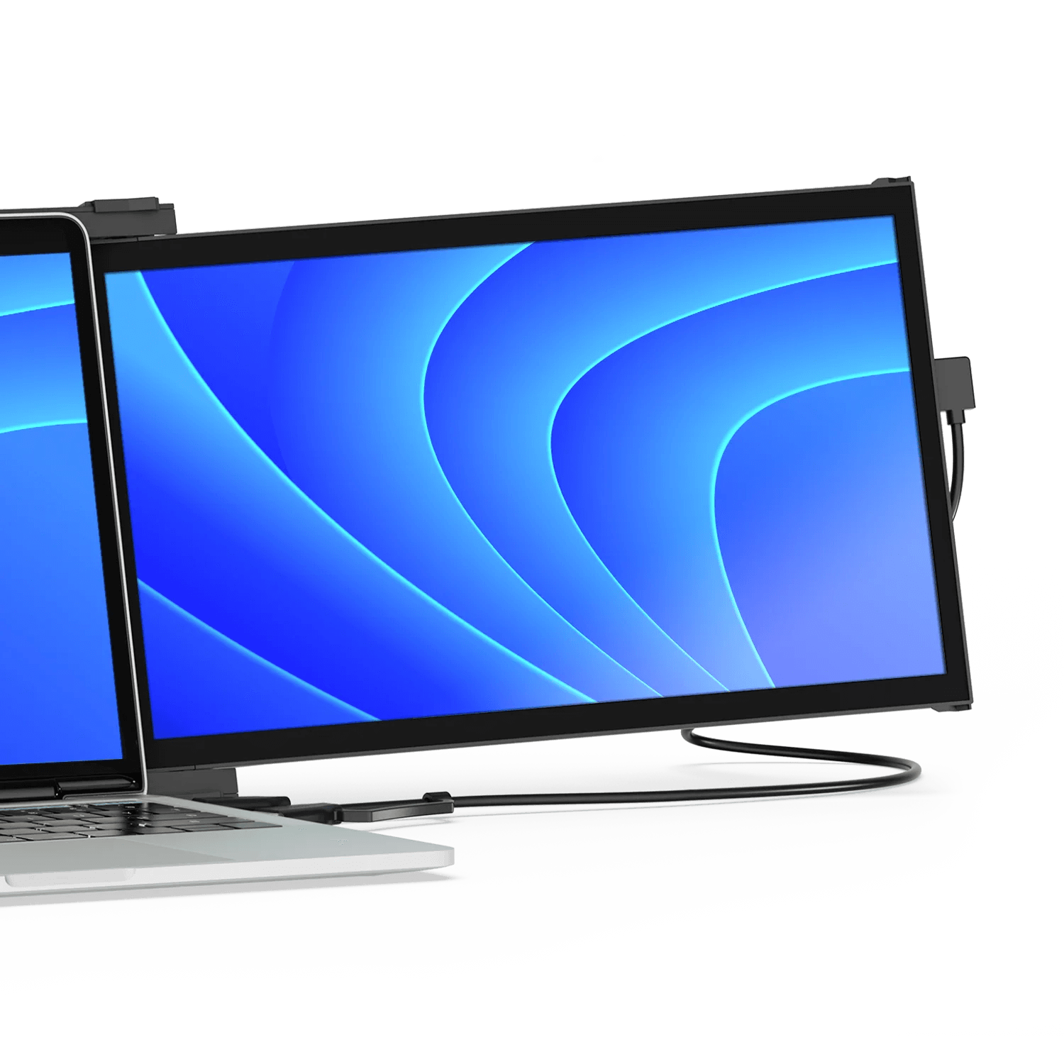*Perfect for laptop users on the go. *Monitors attach to the back of a laptop and can be easily unfolded to provide a dual-screen setup, increasing productivity and enhancing multitasking capabilities. *Lightweight, portable, and easy to set up, making them ideal for professionals, students, and anyone who needs extra screen space while working remotely or traveling. *Expand workspace without the need for bulky desktop monitors.