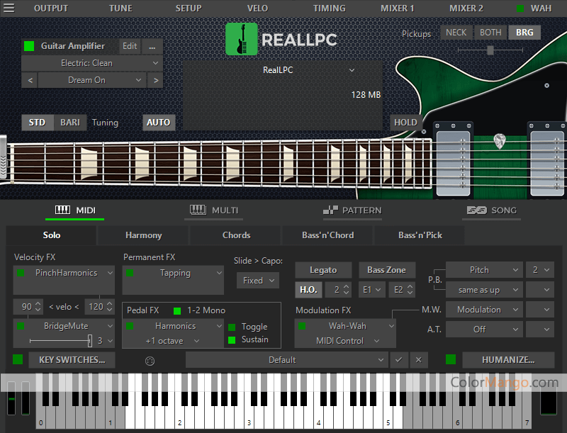 MusicLab RealLPC is quite comprehensive. Based on the unique performance mode and easy-to-use keyboard layout, the keyboard player can play the guitar in a new realistic way. MusicLab RealLPC covers almost all sounds, pronunciations, and skills that professional guitarists can produce on Les Paul, including mute, bridge mute, harmonics, harmonic kneading, chorus bending, plucking, pickup, chord cutting, and so on.