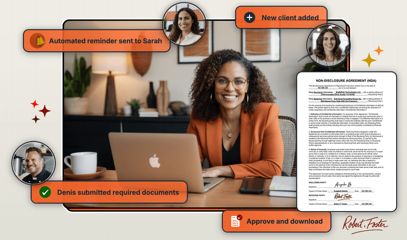 Custom branding & client experience with branded URLs, emails and portal look.