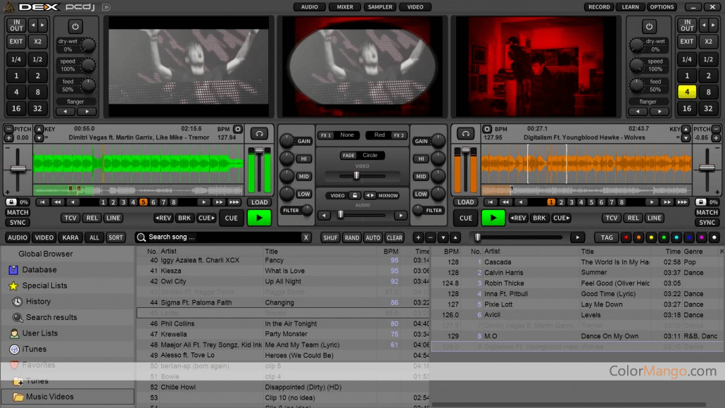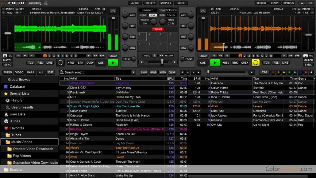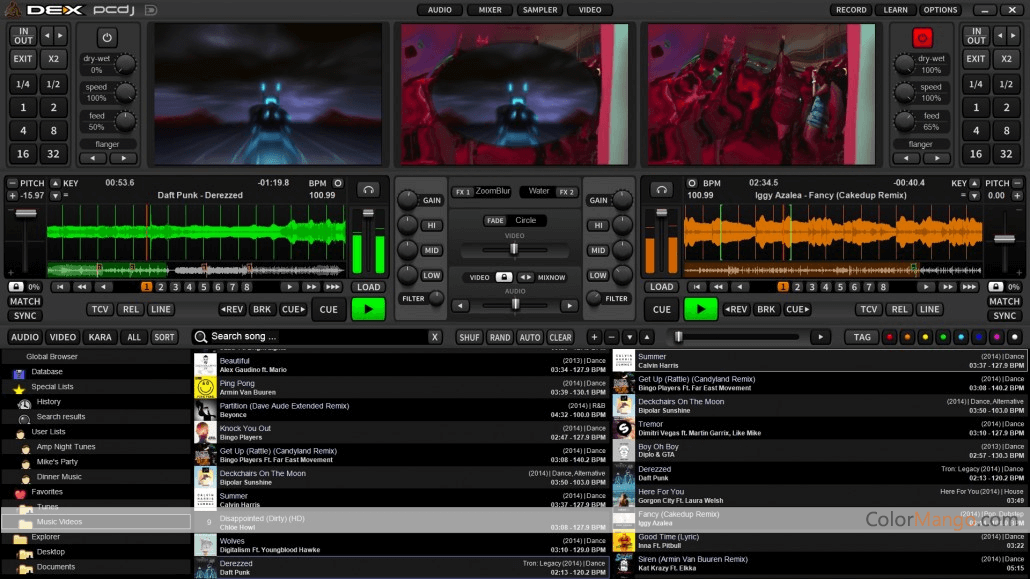 Professional DJ music mixing software. PCDJ DEX (DJ mixing software) has the functions of playing a disc and mixing music. The software is mainly used for making and processing DJ music and can also play music CDs. PCDJ DEX supports mp3, Ogg, WMA, FLAC, WAV.
