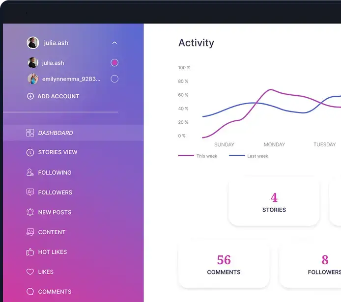 • Content Downloader - Save stories, photos, and videos in original quality.