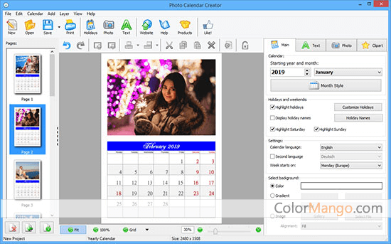 Photo Calendar Maker is a full-featured professional photo calendar making tool. It has built-in various calendar templates, including today's most popular electronic calendar styles. You can choose different display styles with your favorite photos, and then a highly customized calendar is born. It is easy to use, and it allows you to create stylish, professional-looking photo calendars quickly.