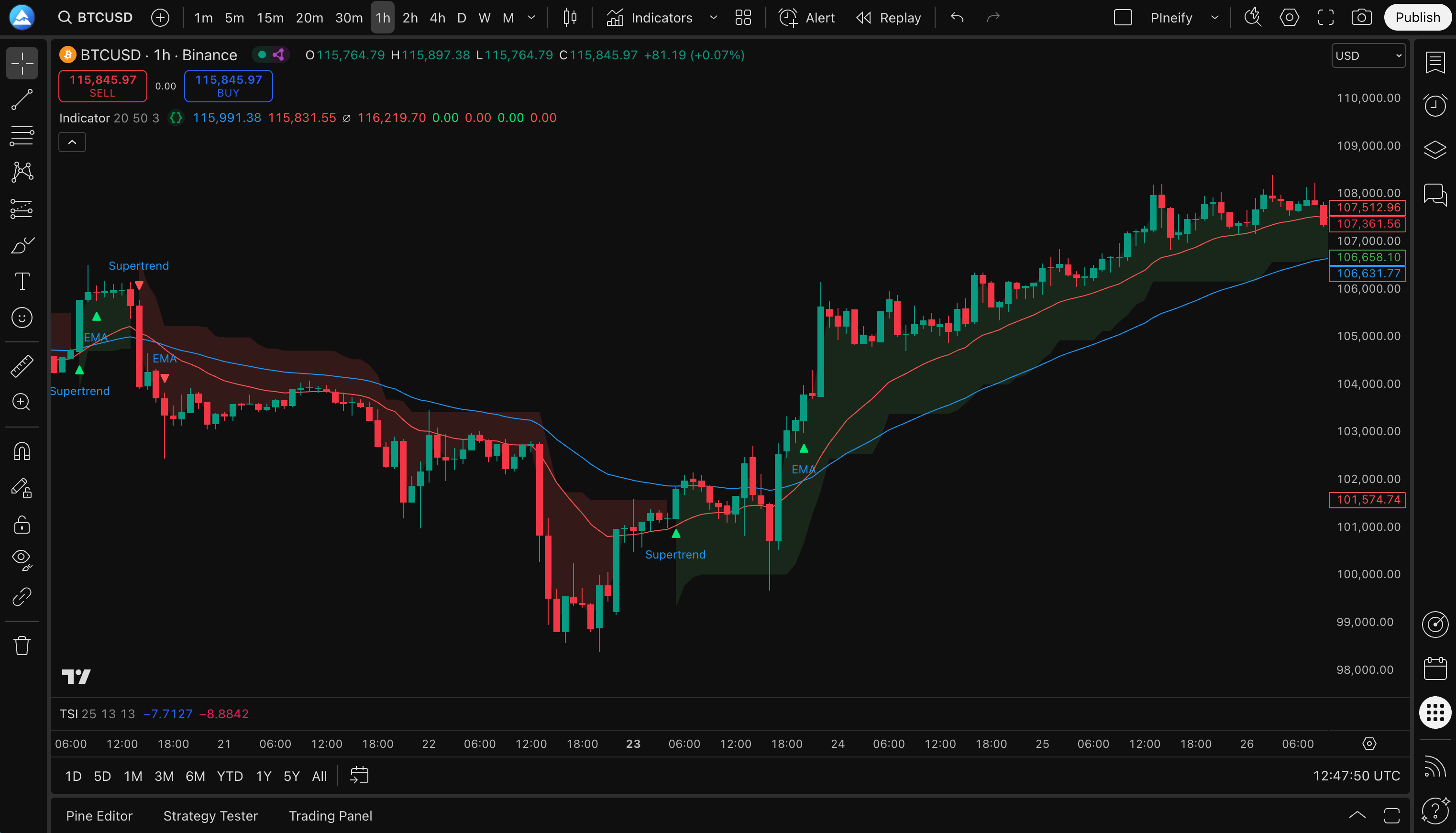Visual Editor — build indicators/strategies without coding.